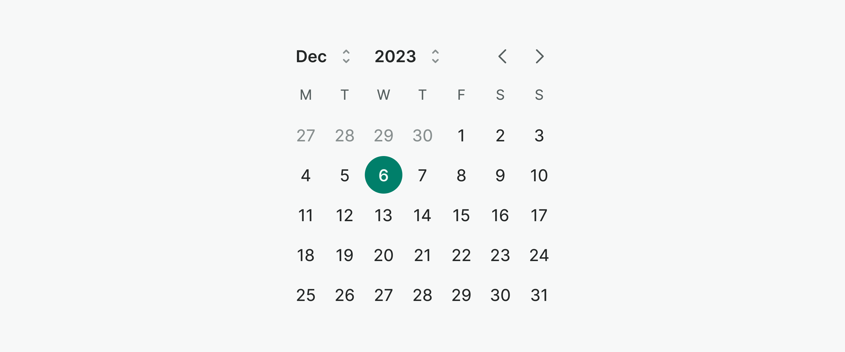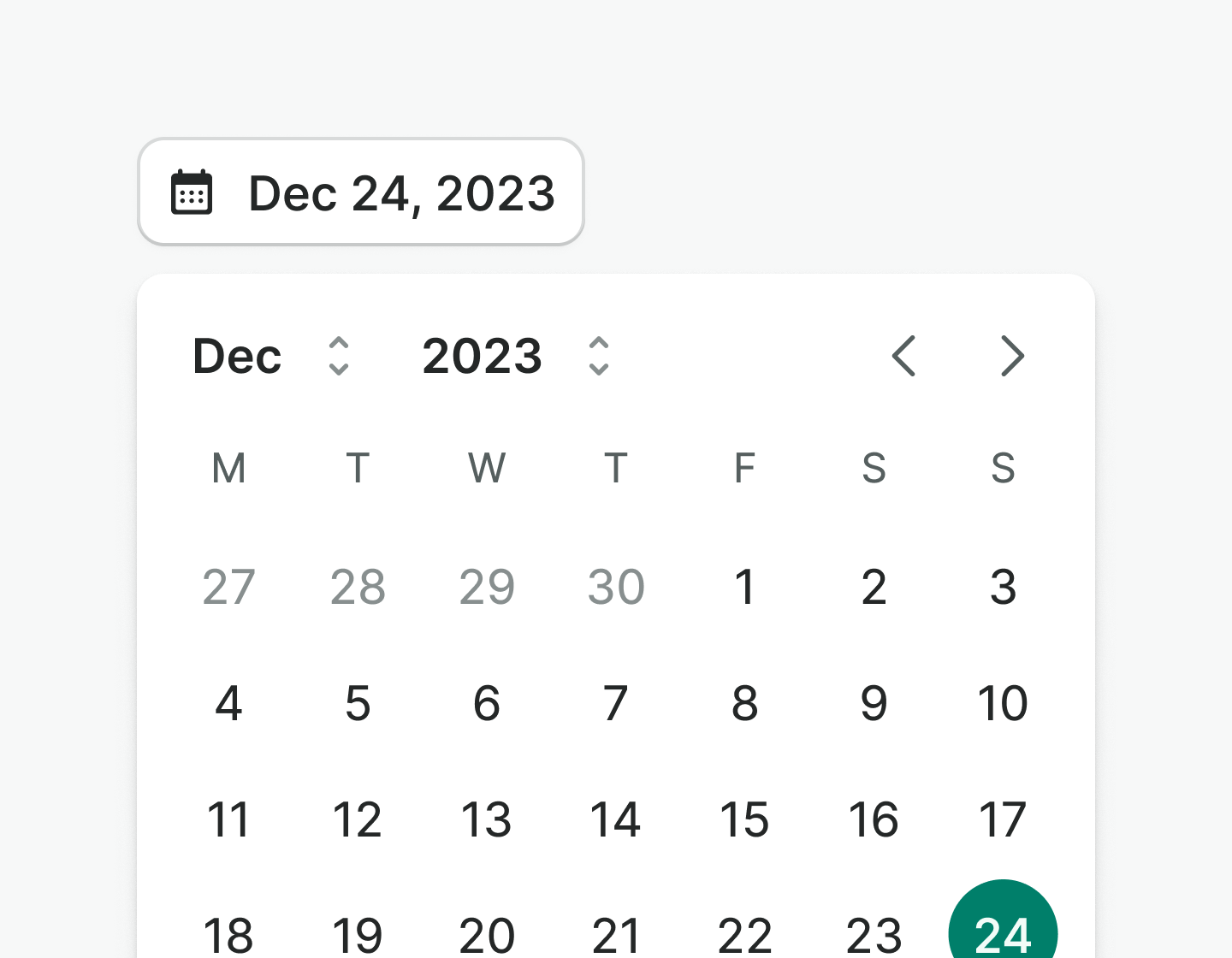 Days in the calendar can be styled to reflect their state and purpose. Use days' states as intended.
