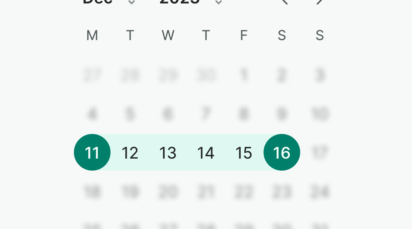 Use when the expected date ranges might go across multiple months. If you only need a single date selection, save space and drive purpose by using the single-month calendar instead.