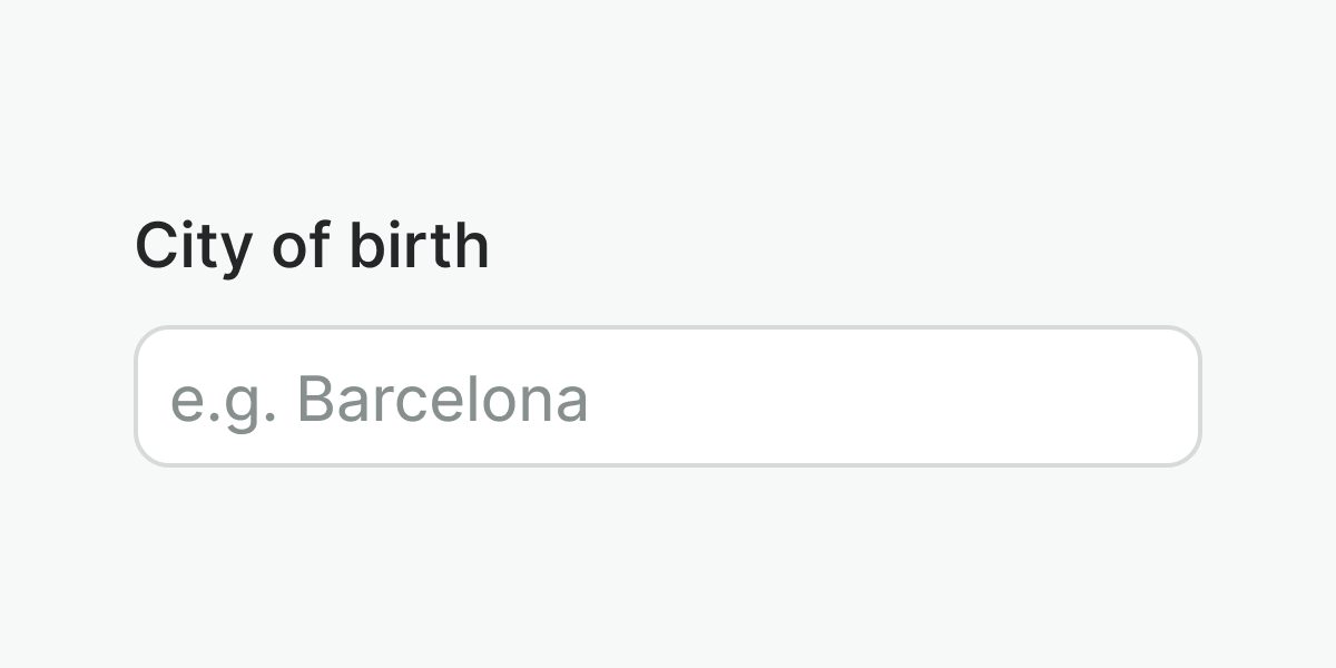 placeholder | Placeholder text to display within the input field. | string | "" | |