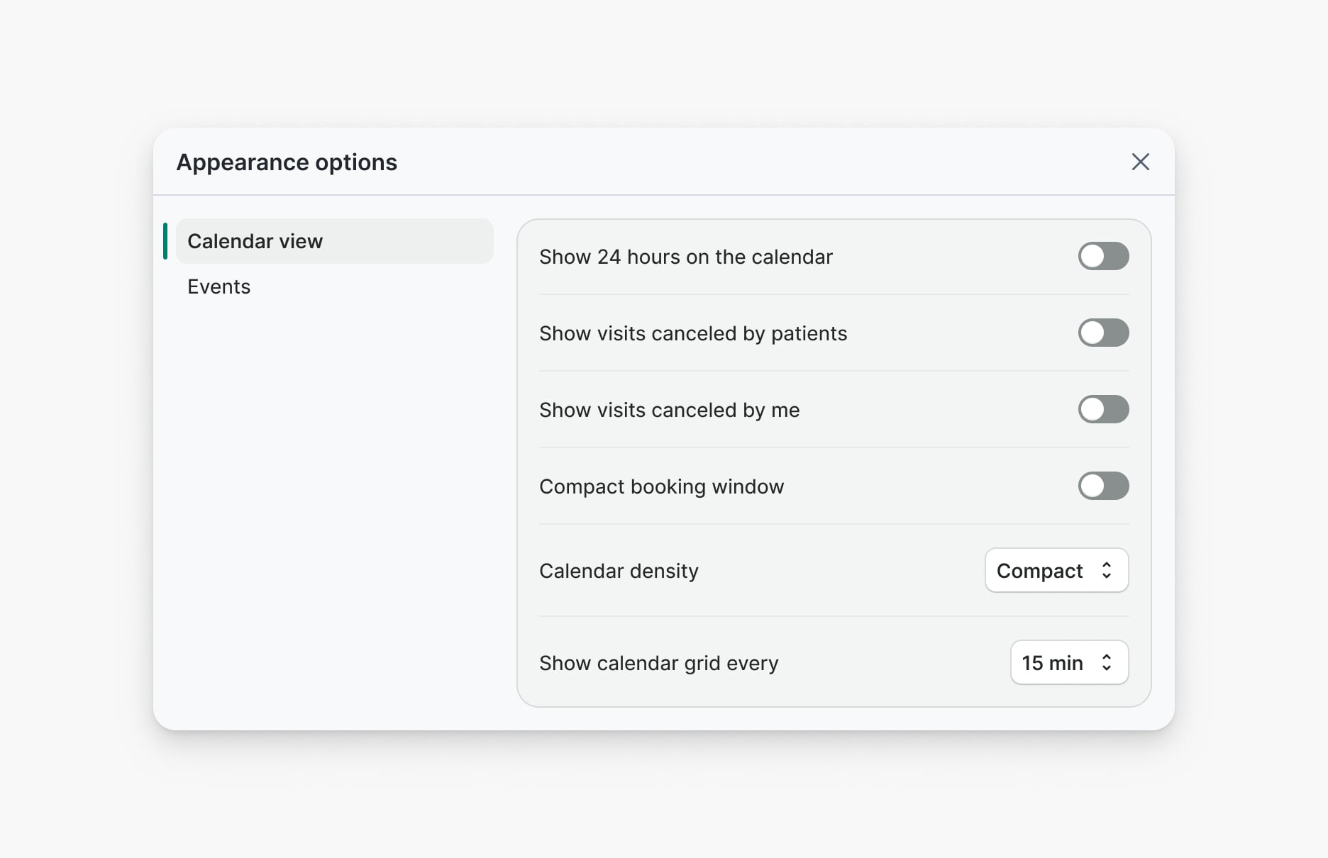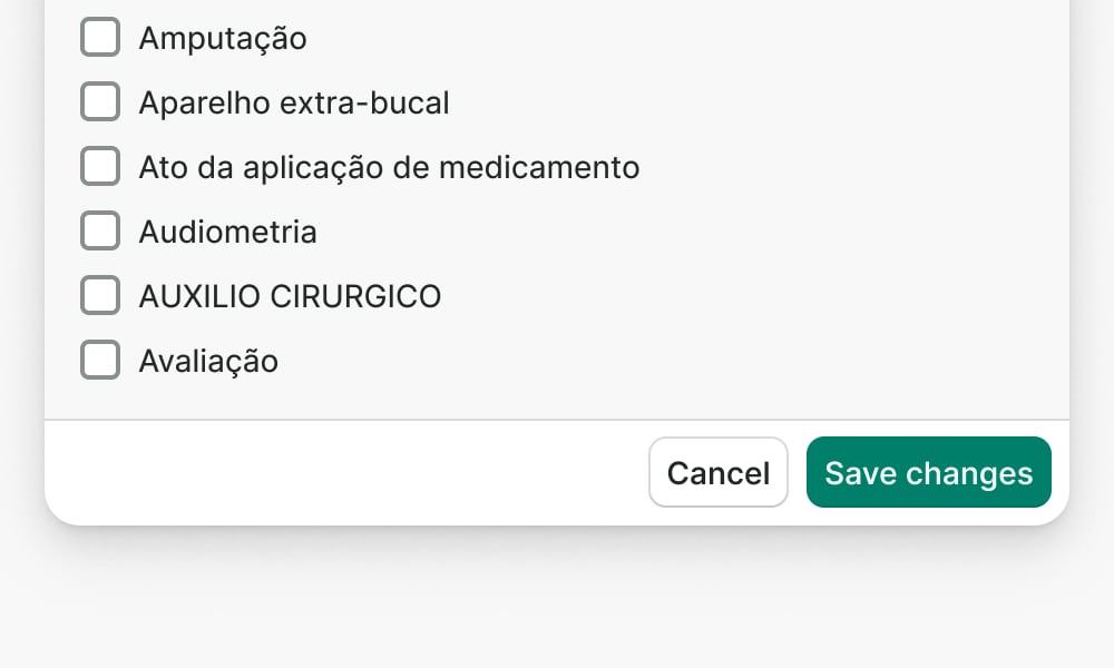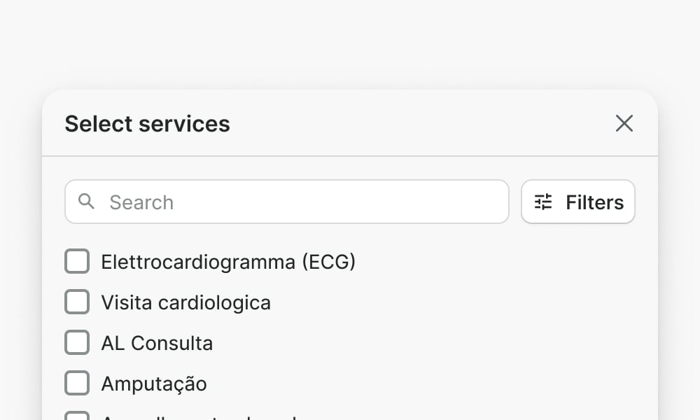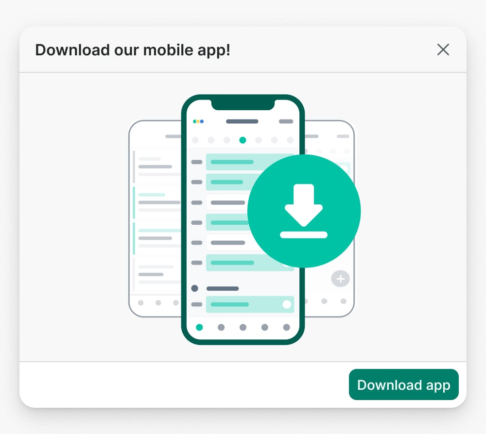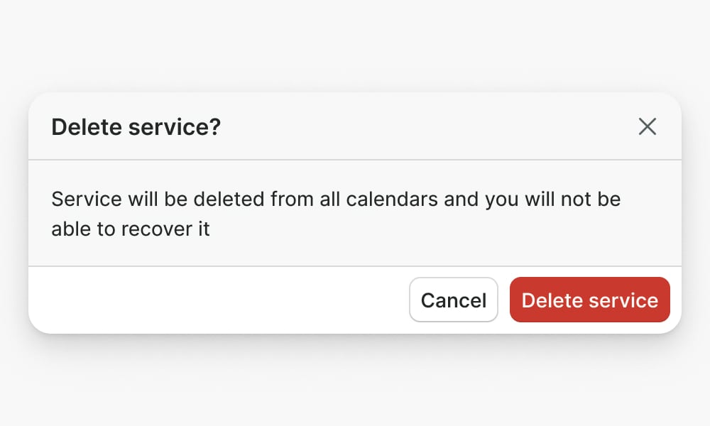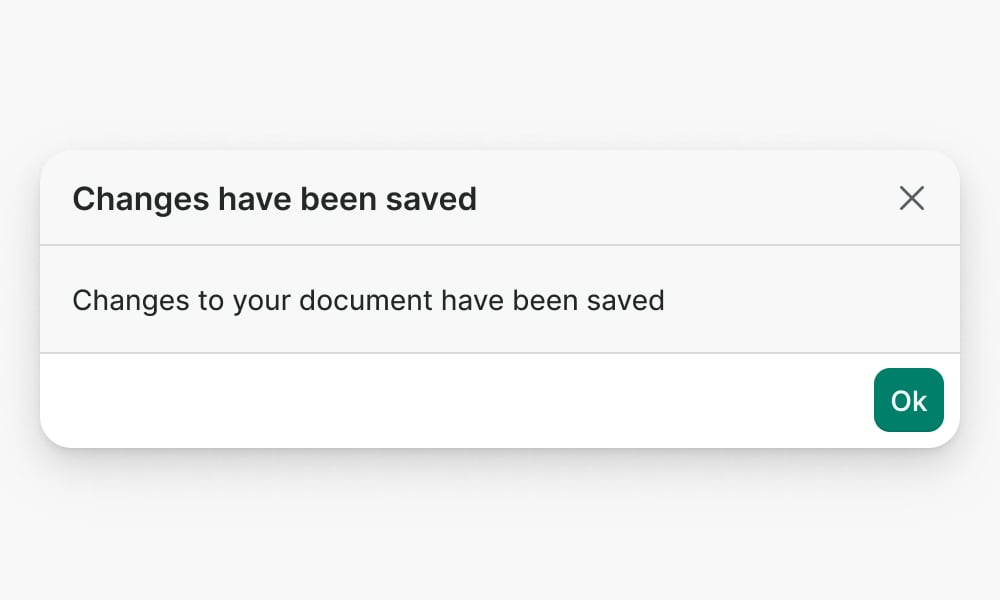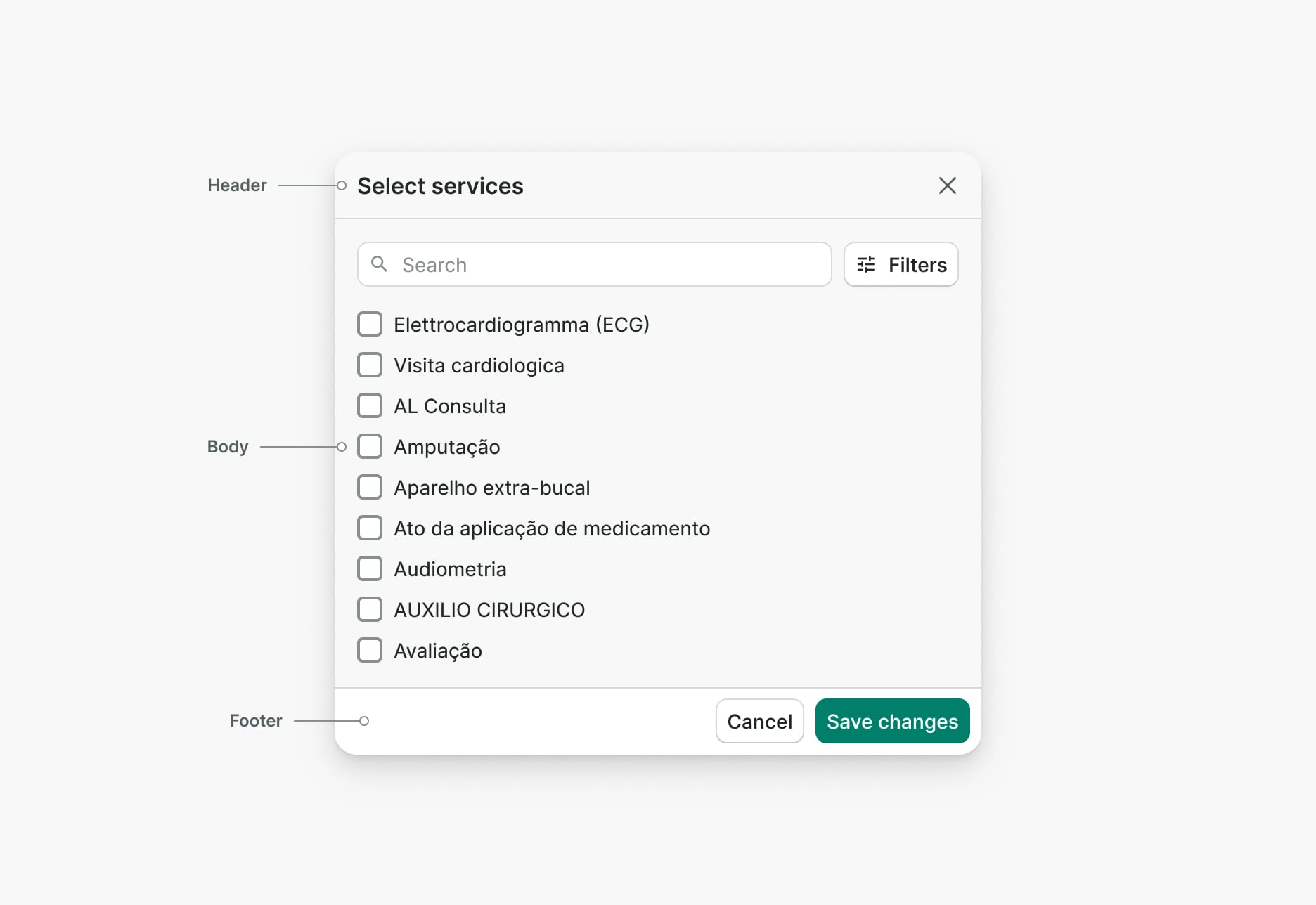 Header provides a title that describes the context of the modal dialog and a close button in the top right corner.