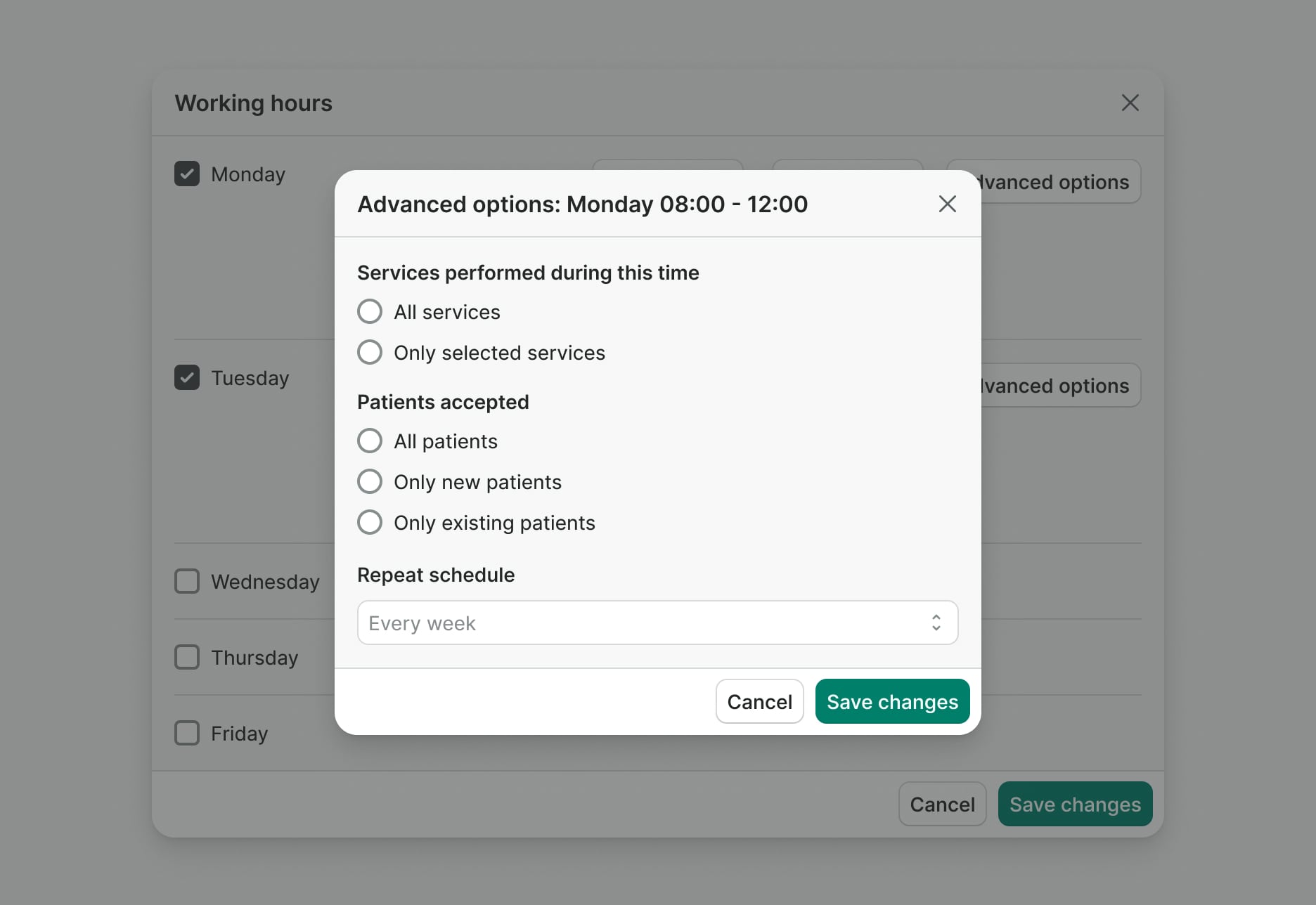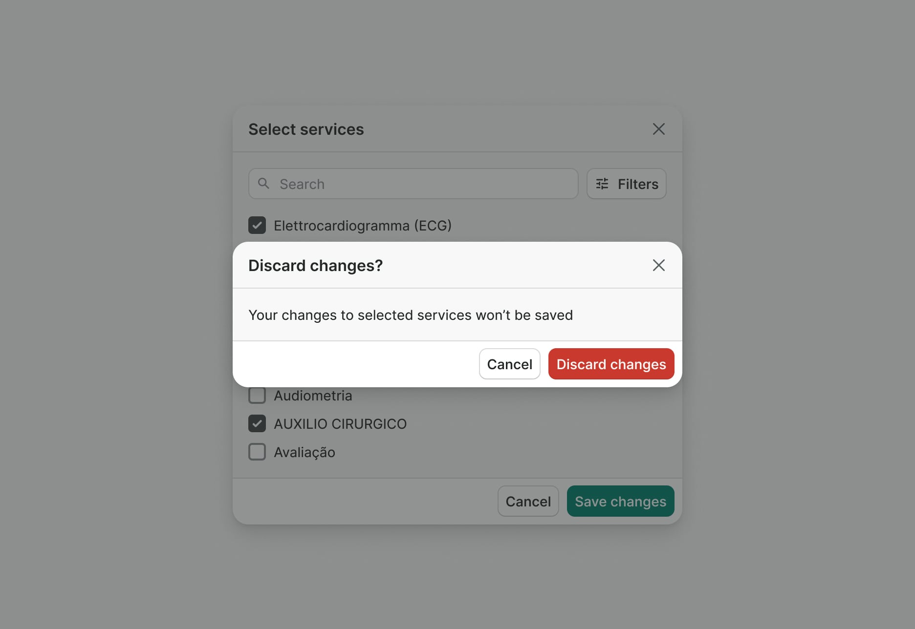 Don’t nest modals. If the situation requires a sequence of decisions, consider a different design pattern. Confirmation modals upon closing are an exception.