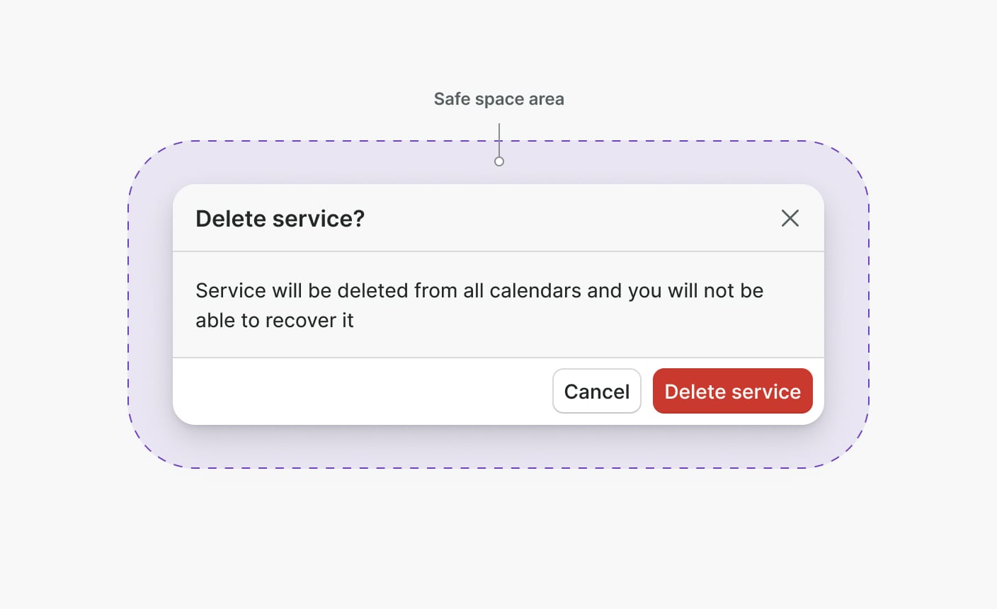 them. Modal dialogs include safespace area between the modal and viewport equal to Space L.
