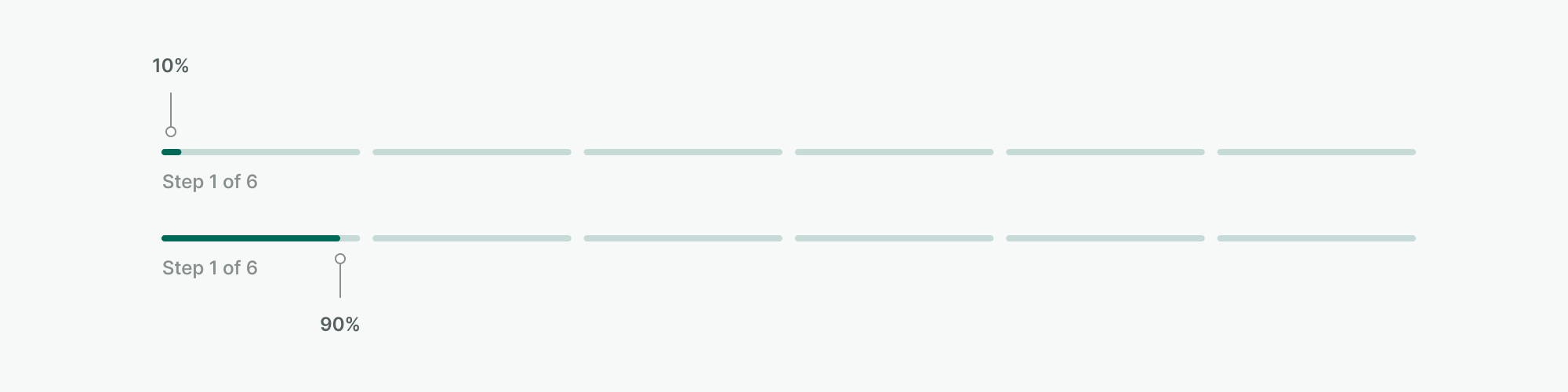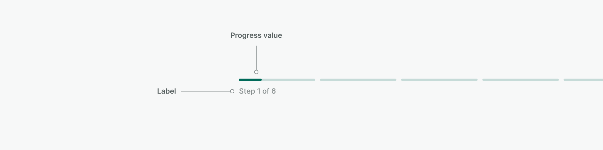 The component provides a mandatory label that states the step of the process (e.g. Step 1 of 6), this information is