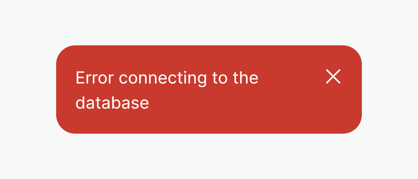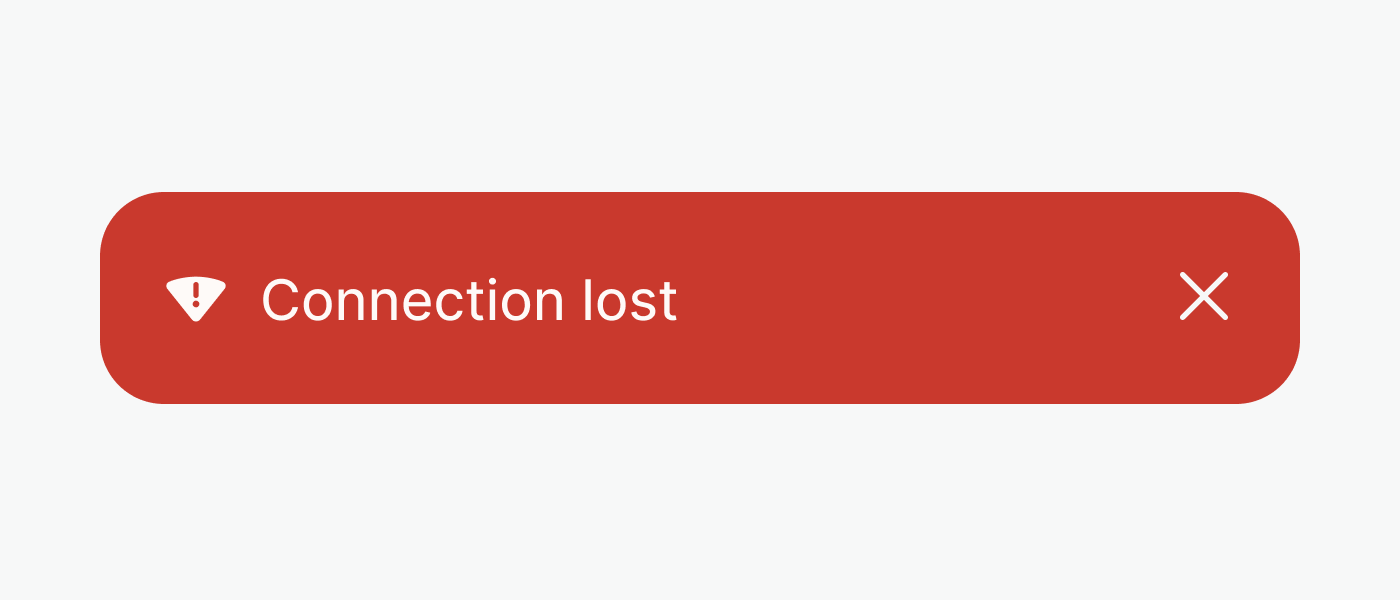 Use the error variant exclusively for systemic errors (for example, no internet connection or error connecting to the database). In other scenarios, the error message needs to go in context, so use patterns embedded in other components.