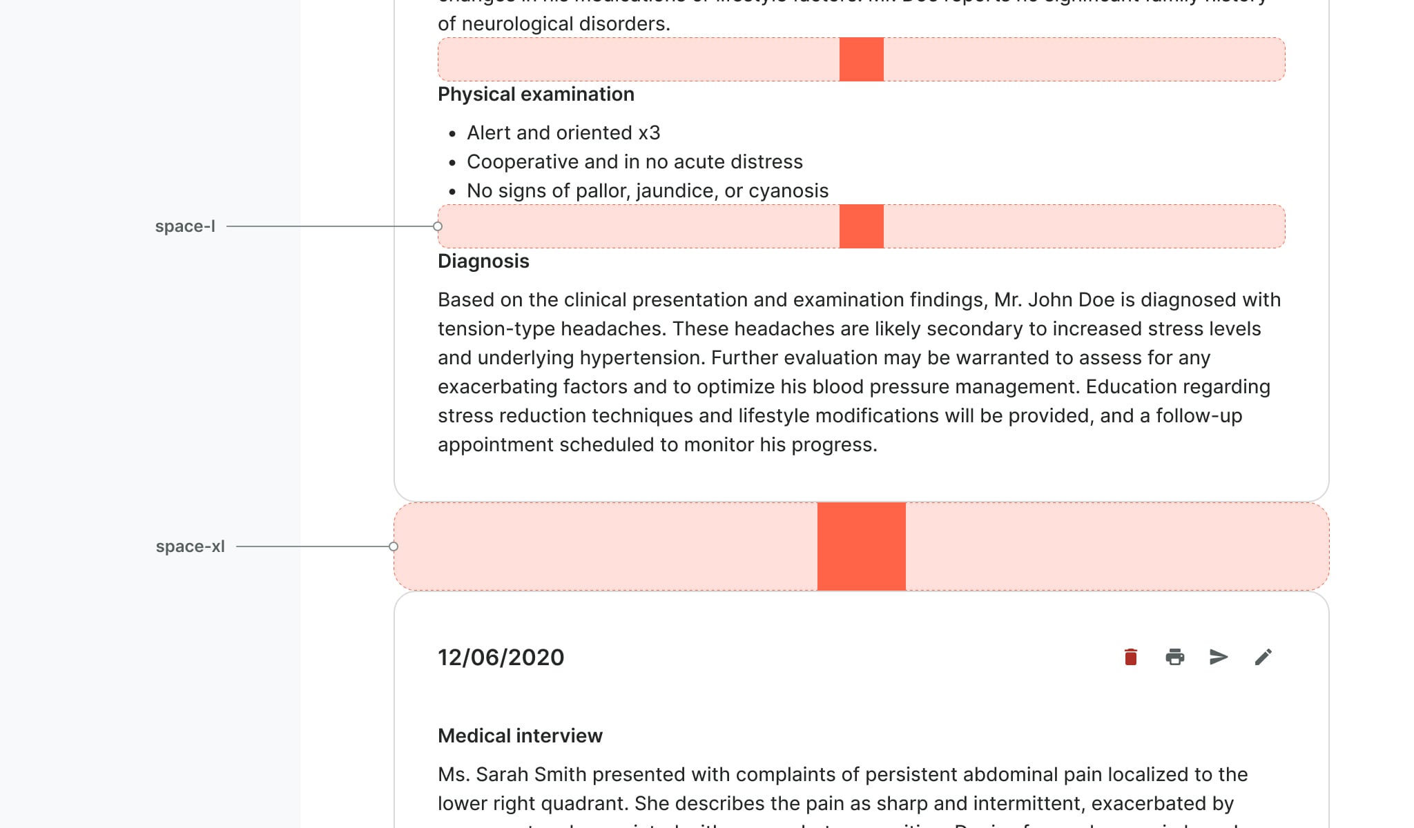 While L (32px) and XL (64px) are more likely to space elements in our layouts (e.g. divide sections, build space in forms, headings or cards).