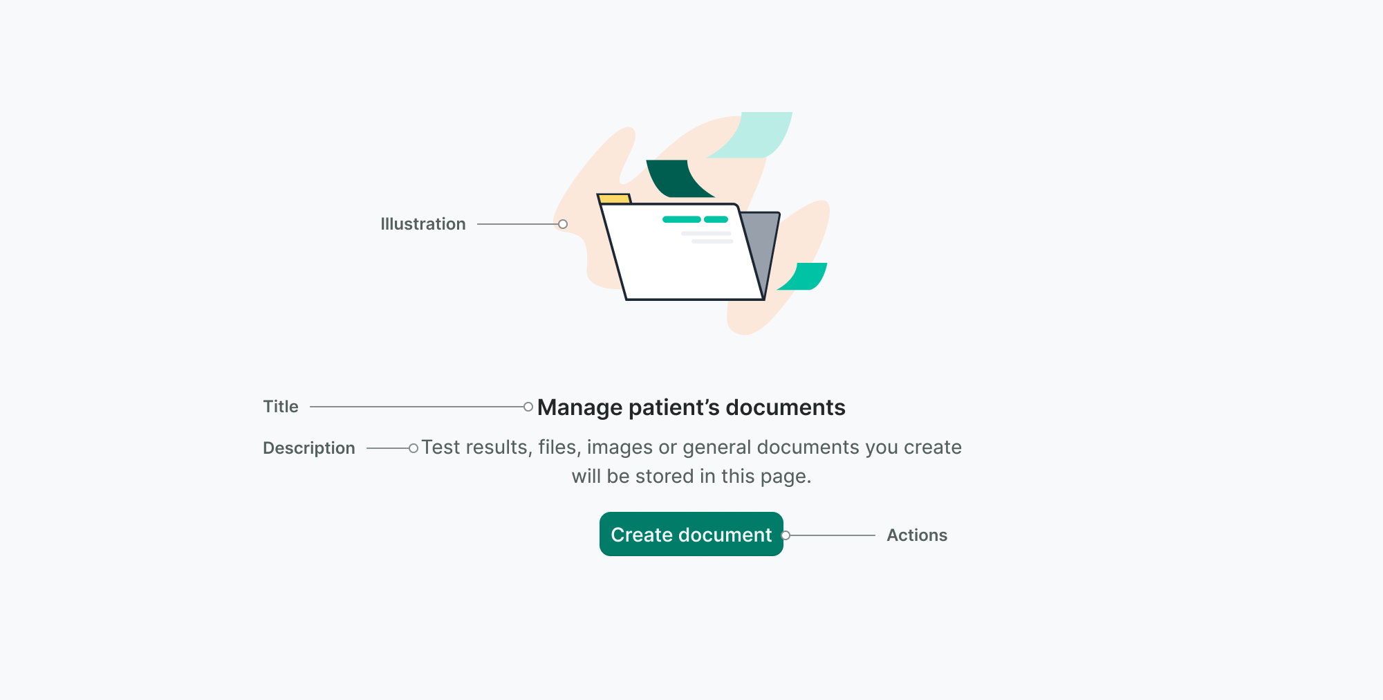 Empty states are used to fill blank spaces when no content is present, or when the feature is temporarily empty. They are meant to propose a path forward.