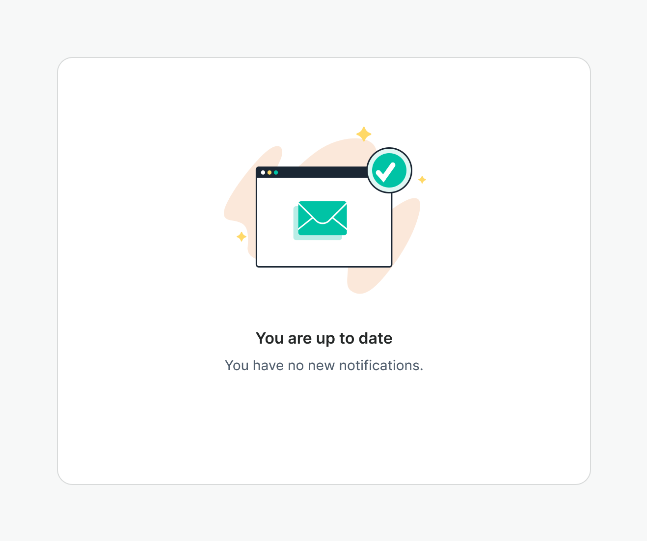 Present an empty state after an action (such as clearing all notifications) to reassure the user that everything is up to date and there is nothing left to review.